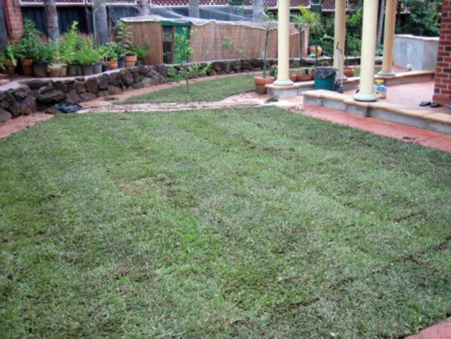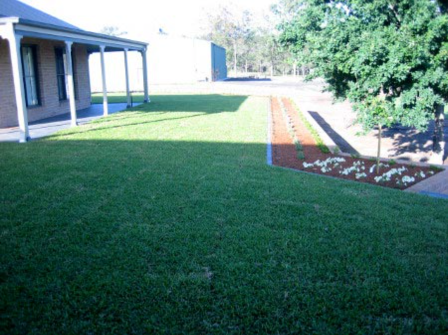 Beautifully landscaped backyard in Tennyson with Sir Walter DNA Certified Buffalo grass.